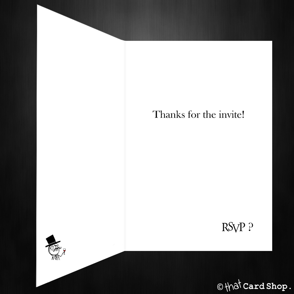 Joke RSVP card with hilarious options, funny comedy acceptance