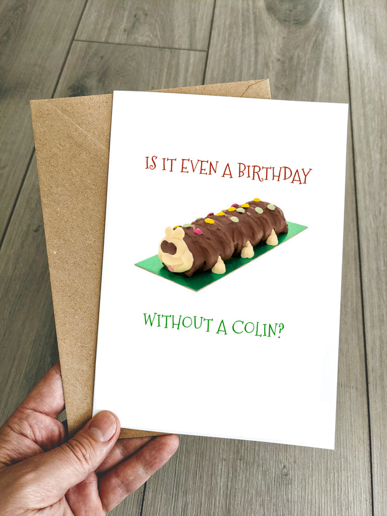 Funny Colin the Caterpillar Birthday Card - It's not a Birthday without cake!
