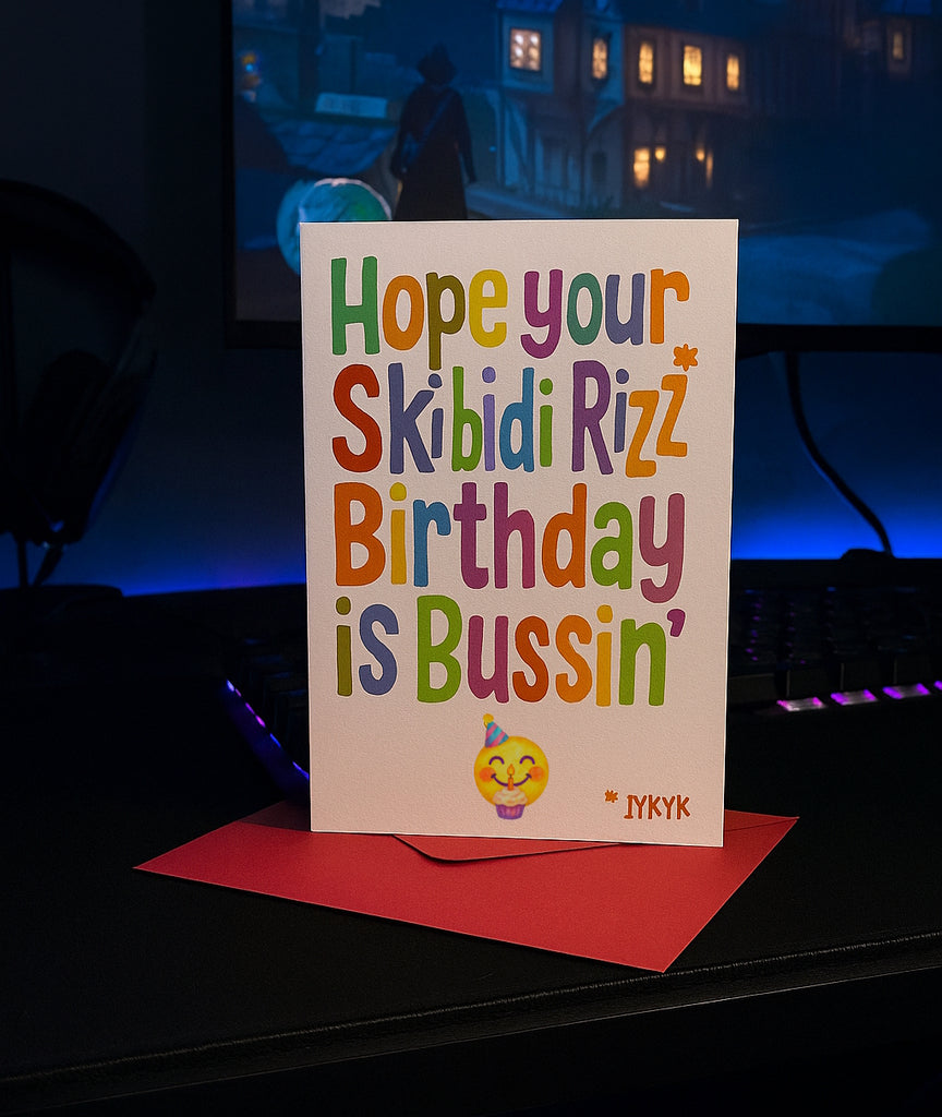 Funny Skibidi Rizz Birthday Card for Teenagers – It's Bussin’ Meme Card IYKYK, Gen Z & Alpha